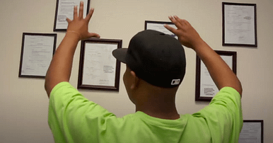 Williams frames his wins and mounts them on a wall. Losses are tattooed on his back. Eight clients’ names so far (in 2013).